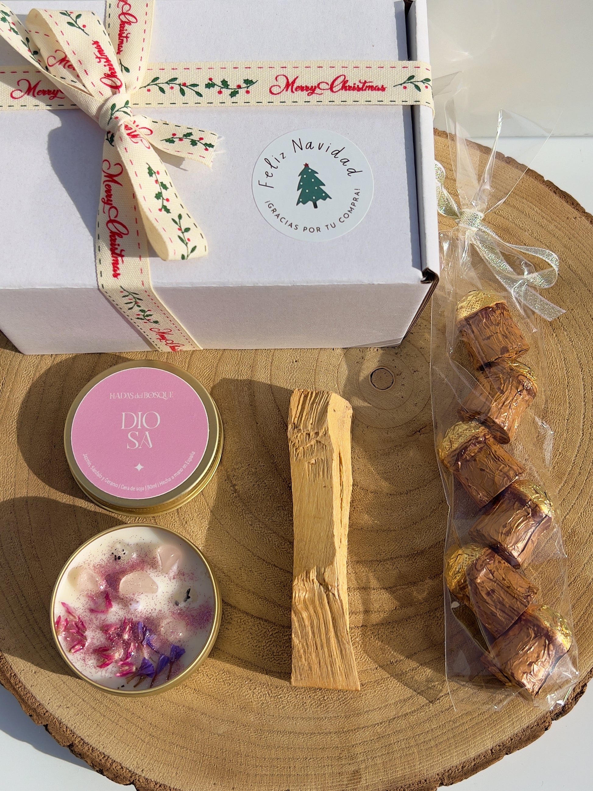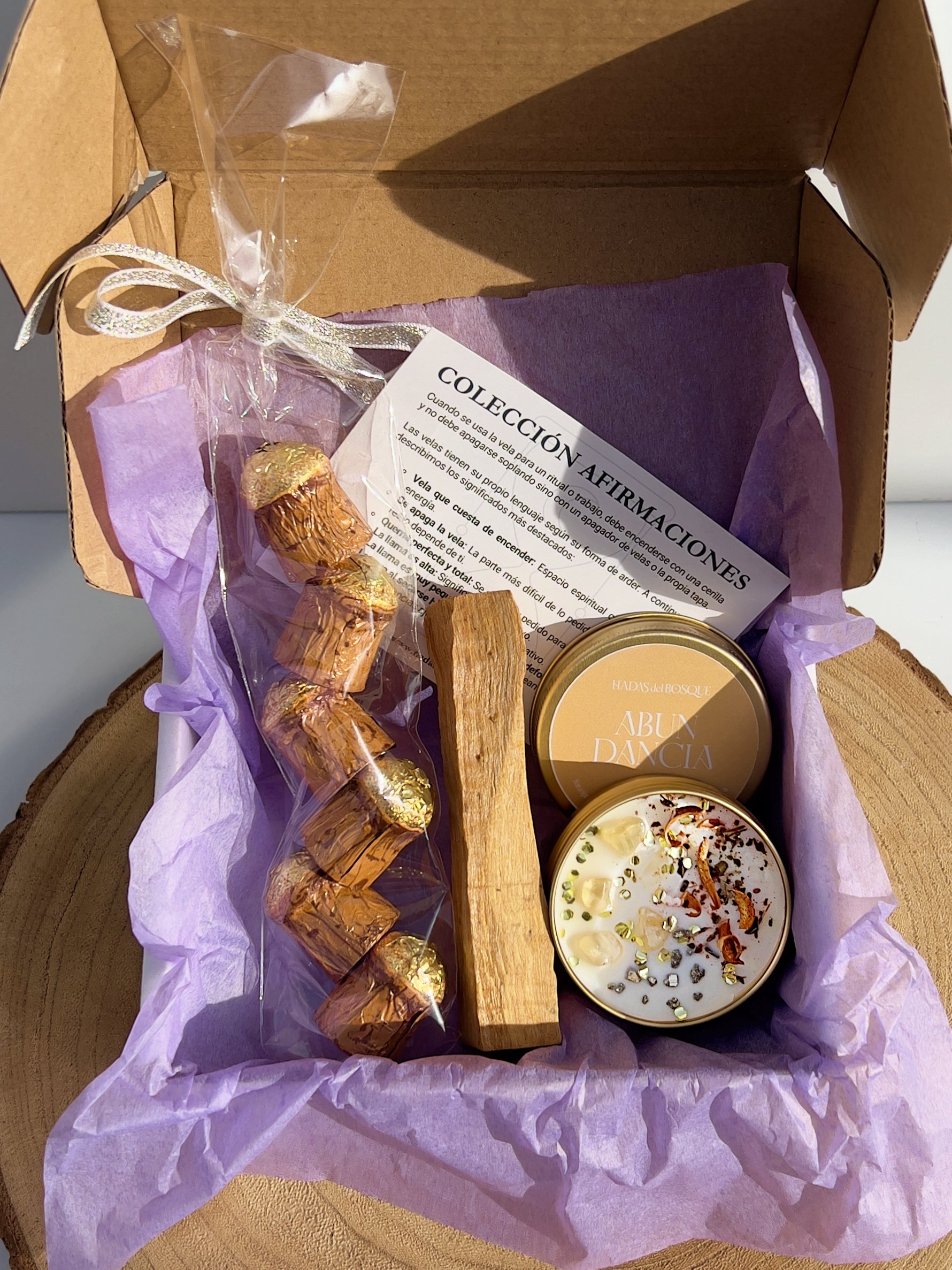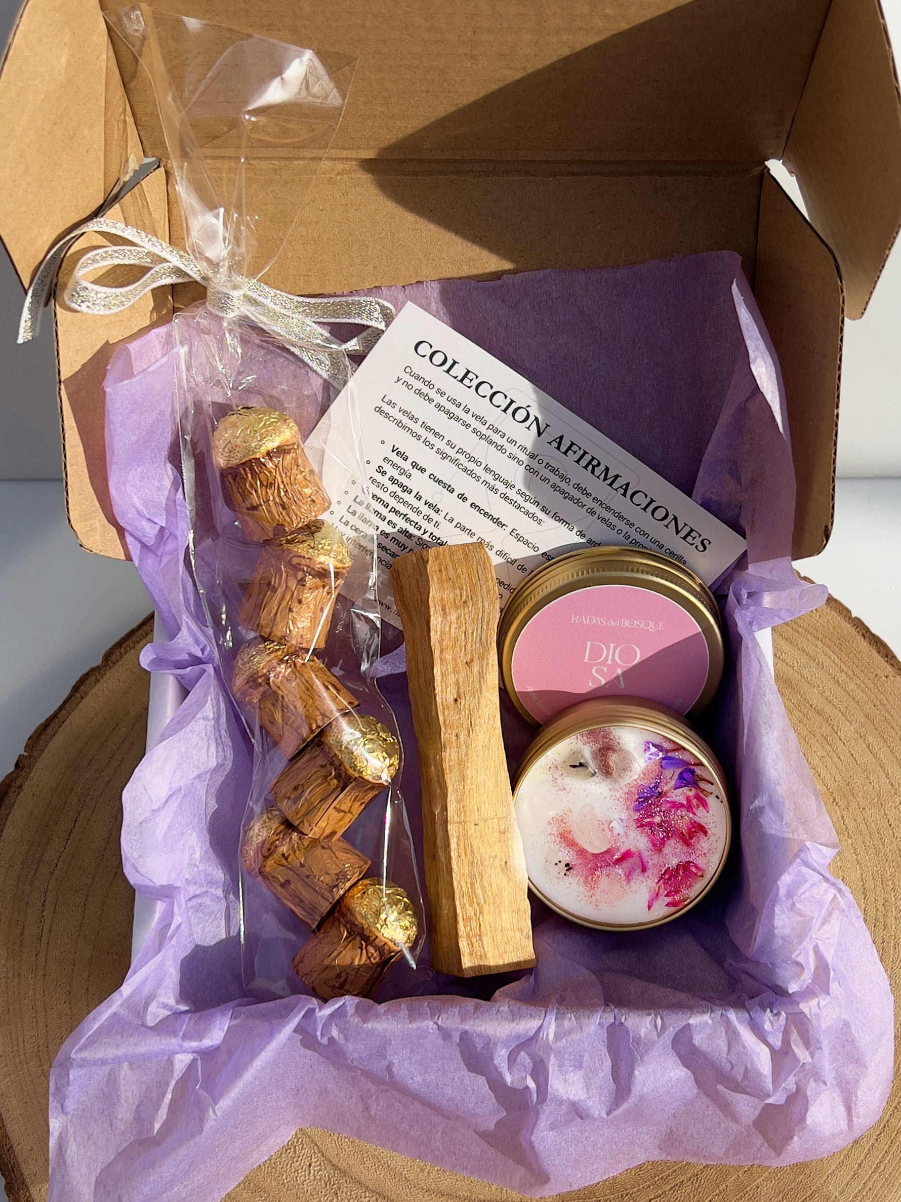 Este pack combina el ritual de la vela, la purificación del espacio y la dulzura de un detalle único, creando un momento de brindis y celebración para ti o para regalar.