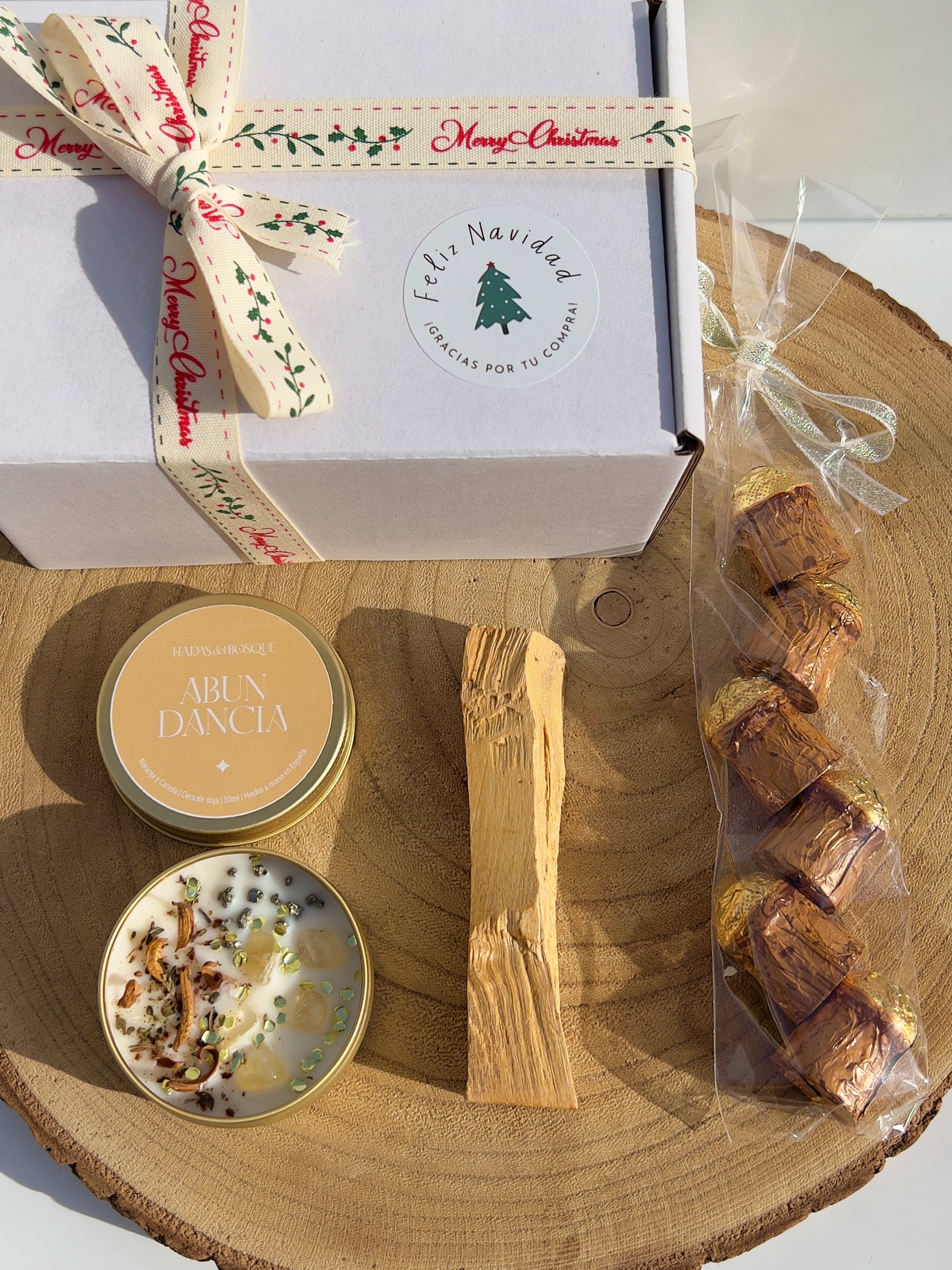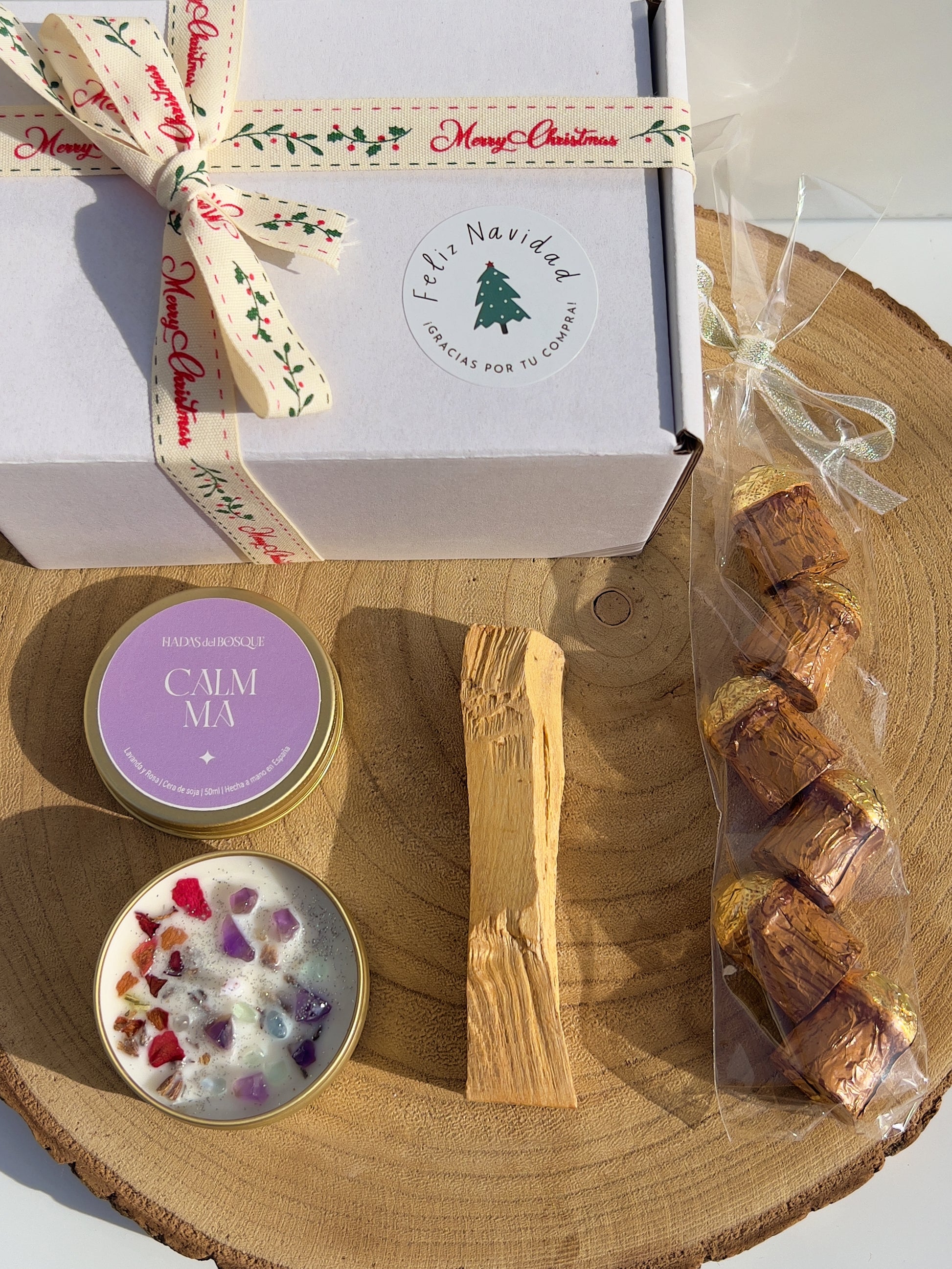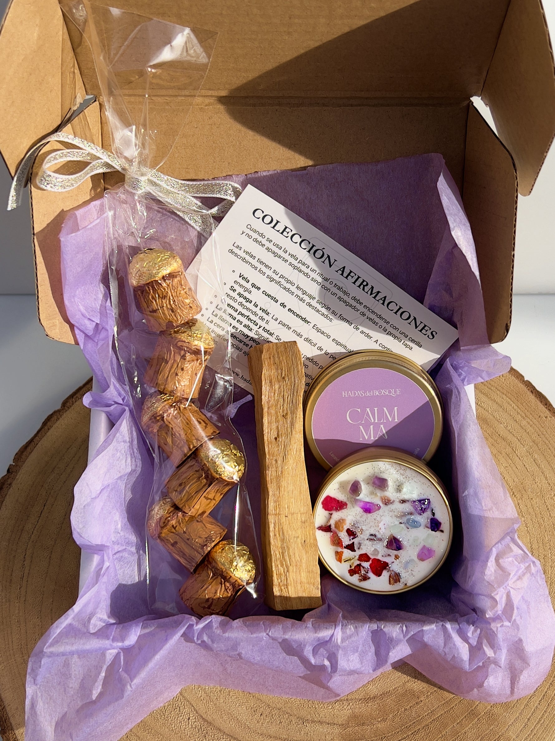 Este pack combina el ritual de la vela, la purificación del espacio y la dulzura de un detalle único, creando un momento de brindis y celebración para ti o para regalar.