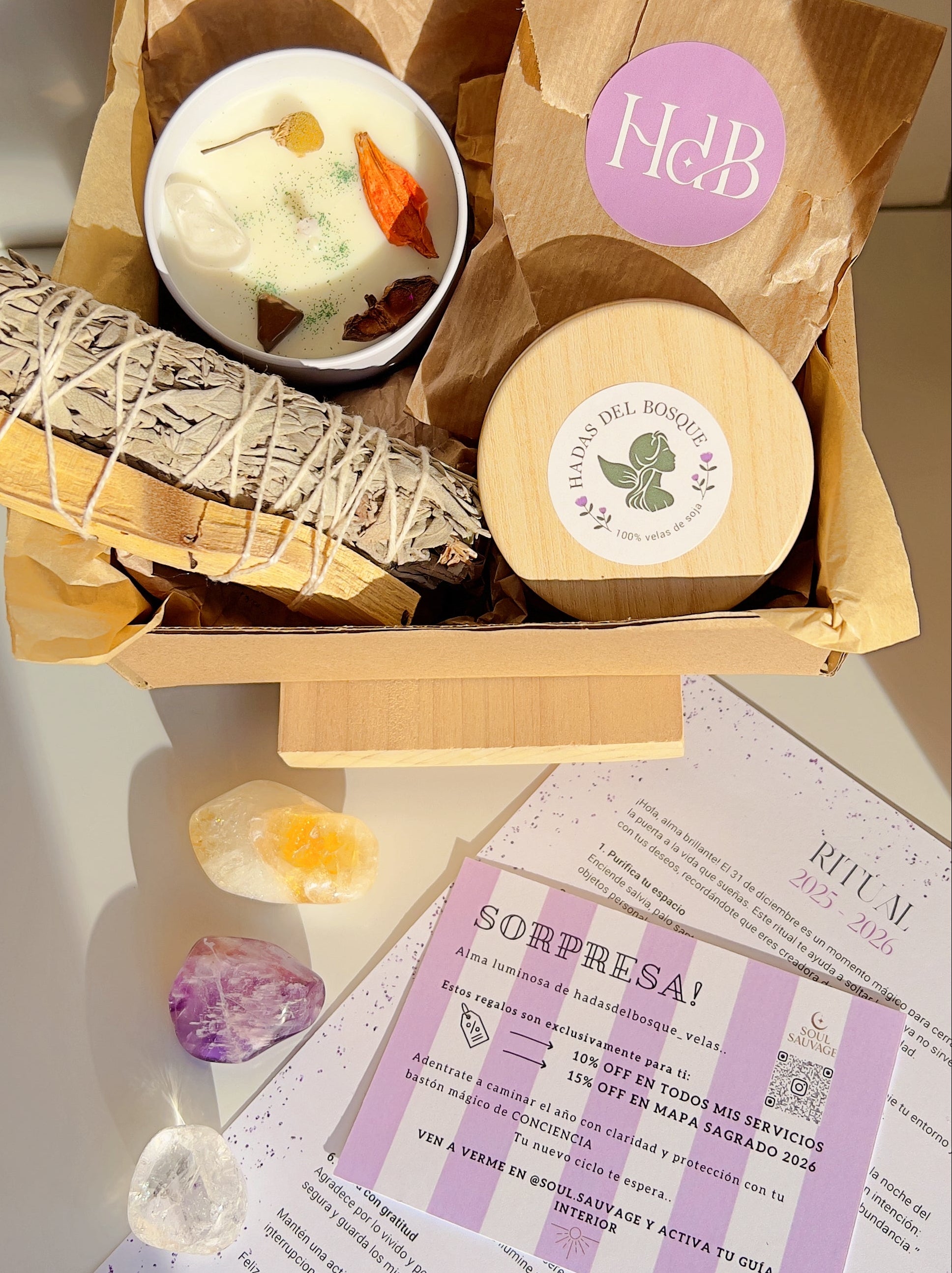 Cada elemento de este pack ha sido cuidadosamente seleccionado para acompañarte en un momento de introspección, cuidado y conexión, ayudándote a preparar tu energía para recibir el año que comienza.