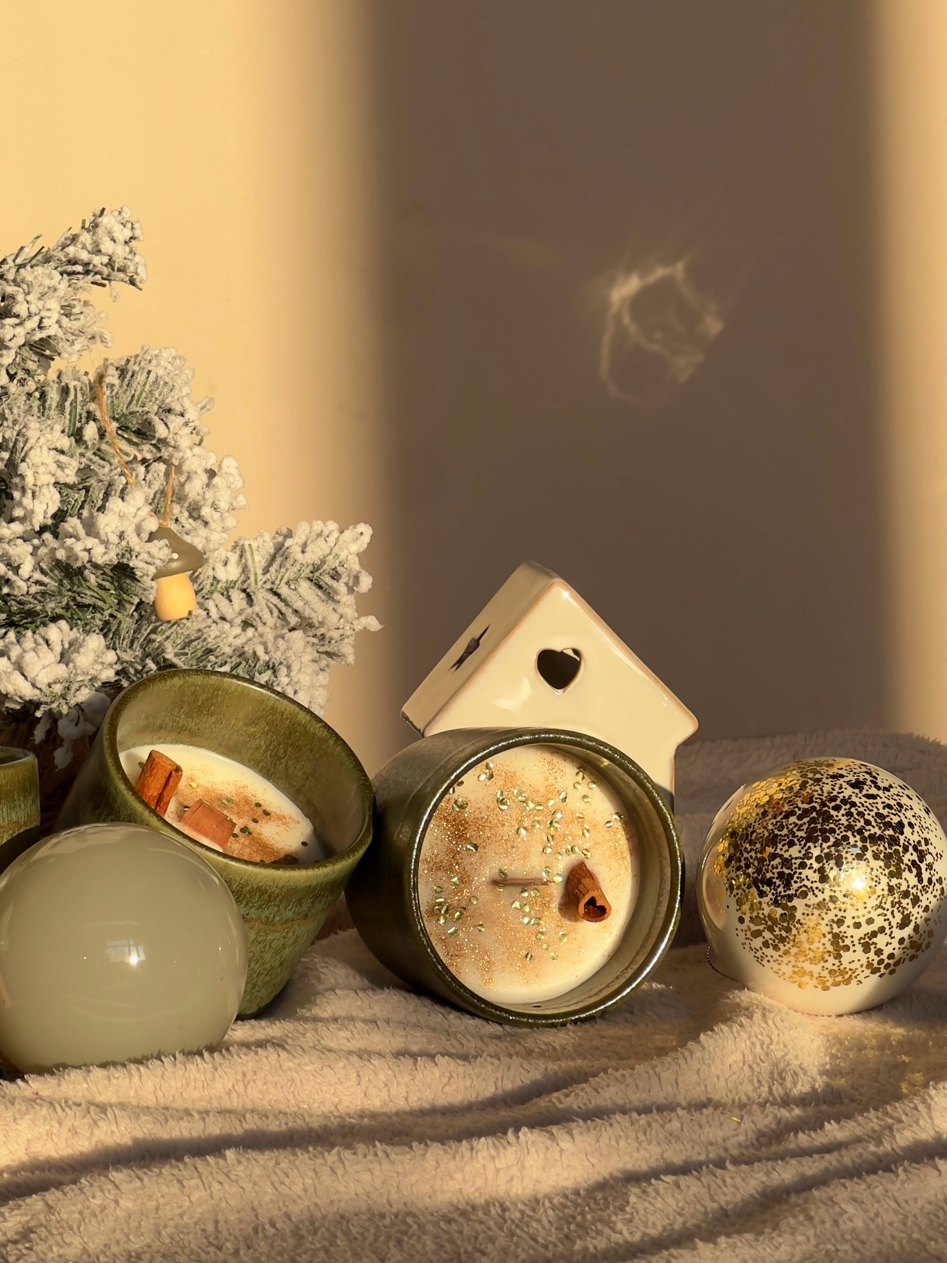 • Vela artesanal navideña (tarro de cerámica que luego funciona como maceta)